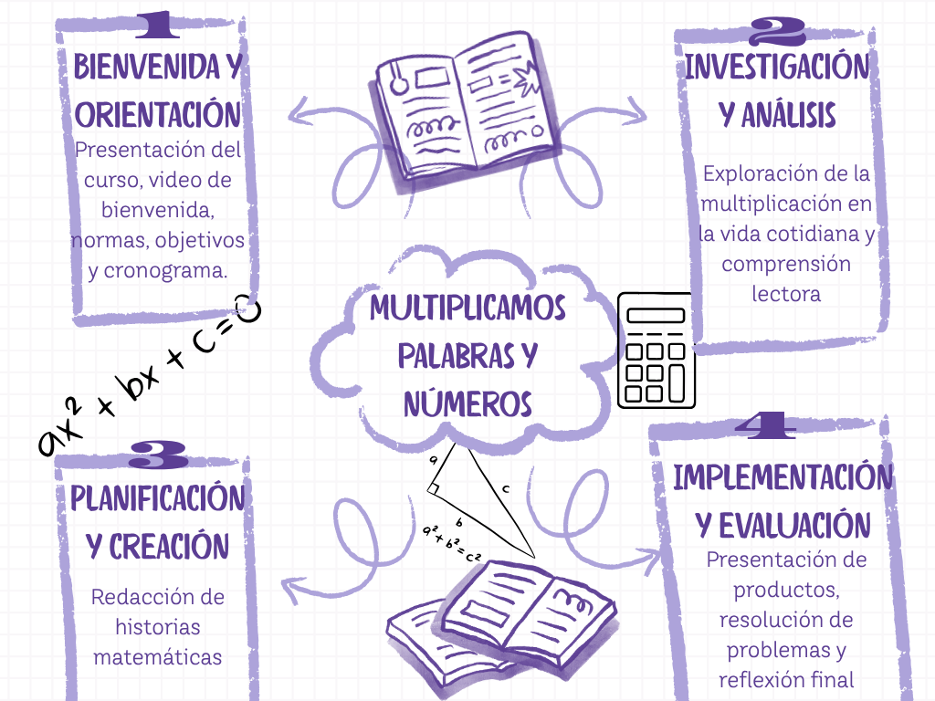 Proyecto transversal entre Matemáticas y Español donde los estudiantes de grado 4 desarrollan habilidades para resolver problemas de multiplicación y expresarlos mediante historias y textos creativos, usando herramientas TIC